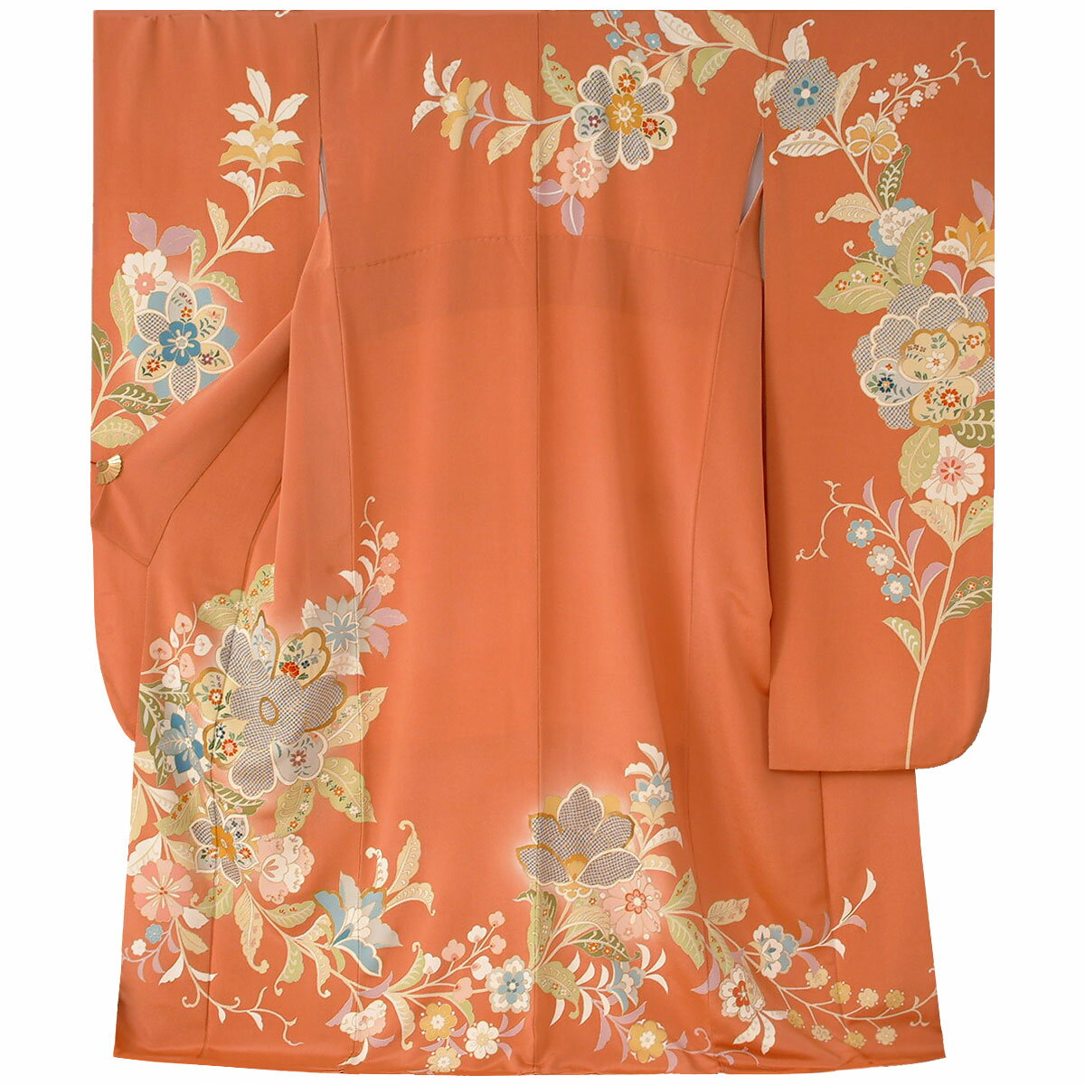 成人式は1ヶ月以上レンタルOK!【成人式 振袖 レンタル】RS156 正絹 柿色 唐花文様〔成人式〕〔フルセット〕【往復送料無料】【足袋プレゼント】/女性和服/ふりそで rental れんたる せいじんしき/振り袖【訳あり】