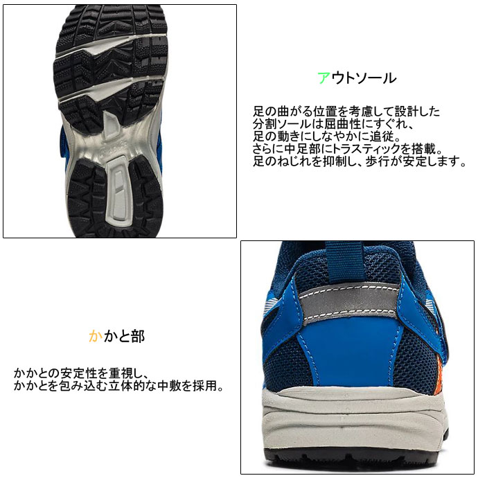 アシックスのキッズシューズ! ●足裏のアーチが発達し、正しい歩き方を身につけていく約3−7歳の児童向けに展開する「PRESCHOOL」シリーズ。