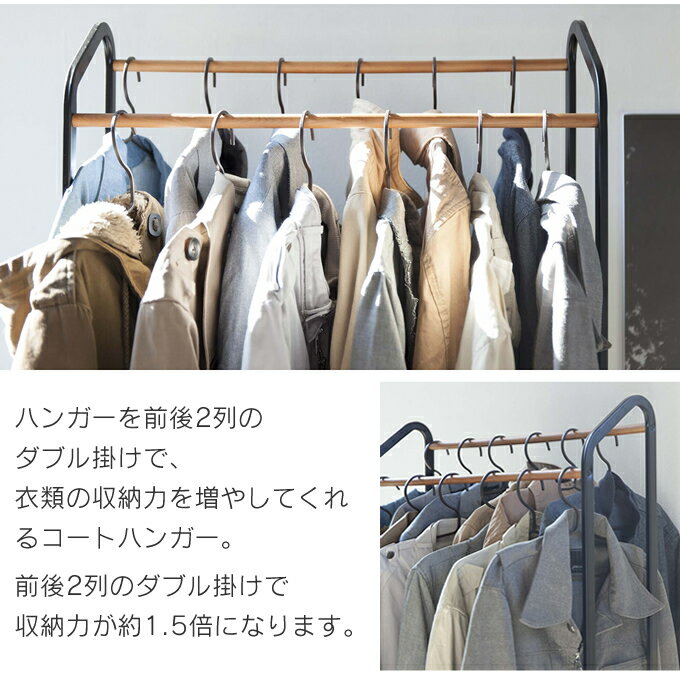 ハンガーを前後2列のダブル掛けで、衣類の収納力を増やしてくれるコートハンガー。