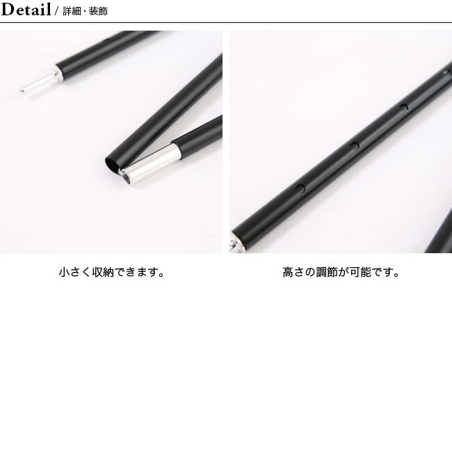 ・アジャスタブルタープポールM ・アジャスタブルタープポールL 【 SPEC/製品仕様 】■ブランド名:NEMO■商品名:アジャスタタブルタープポール S■商品型番:NM-AC-TPS■サイズ:使用サイズ:130cm〜155cm、収納サイズ:48cm、ポール径:1.5cm■素材:アルミニウム■重量:275g■生産国:−■広告文責:株式会社カンパネラ※PCモニター環境により画像の色合いが若干異なる場合がございます。