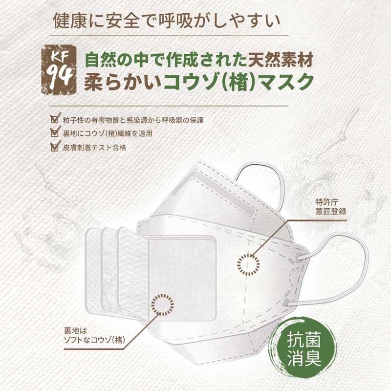 【快適な状態と敏感肌を保護するために伝統韓紙を使用】 ・コウゾ(楮)から抽出した繊維は、環境にやさしい素材で、 抗菌効果と消臭機能が非常に優れており、敏感肌にも刺激が少ないです。