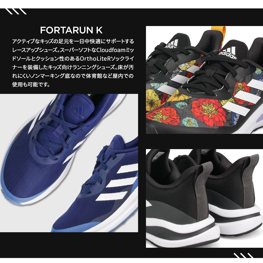 アディダス スニーカー キッズ 男の子 女の子 ローカット レースアップ ジュニア シューズ 軽量 ランニング 25cm 紐靴 運動靴 ノンマーキング 体育館シューズ 通学 学校 屋内 黒 ブラック 青 ブルー フォルタラン FORTARUN K GY7596 GY7597 GY0829 GZ6007 送料無料