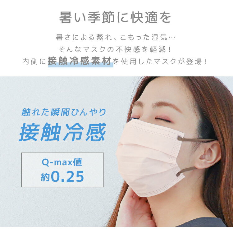 2022年モデル! 暑い夏を乗り越える必需品! 三層構造の使い捨て不織布マスク「冷感不織布マスク」 不織布使い捨てマスクに接触冷感加工を施した夏用マスクです。